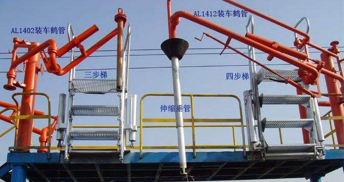 三、對于甲B(汽油、苯、甲苯、乙苯、乙醚、乙醇、二氯甲烷、醋酸乙脂等)、乙A類(煤油、冰醋酸、丁醇、丙苯、環(huán)氧氯丙烷、異戊醇等)液體介質(zhì),應采用帶回氣管線的頂部密封帽(蓋)式密閉液下裝車,伸縮垂管末端采用分流口形式,同時應在充裝前將垂管深入槽罐底部。鶴管型號一般為AL1412。