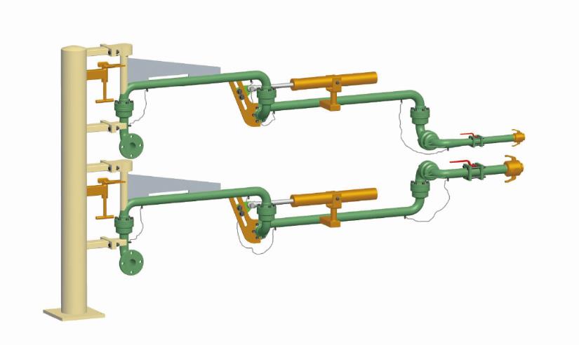 - 外臂:可在水平面和垂直面的范圍內(nèi)轉(zhuǎn)動,主要用于裝卸臂同槽車、槽船調(diào)整對接工作位置的部件