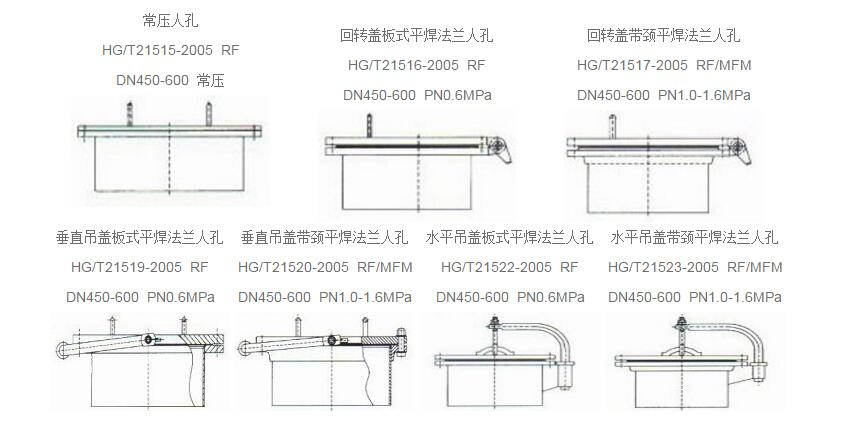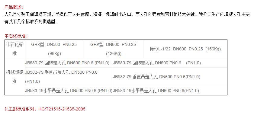 注:由于化工部標準人孔的筒節(jié)都比較薄,一般都要加厚,在選型、訂貨是注明。